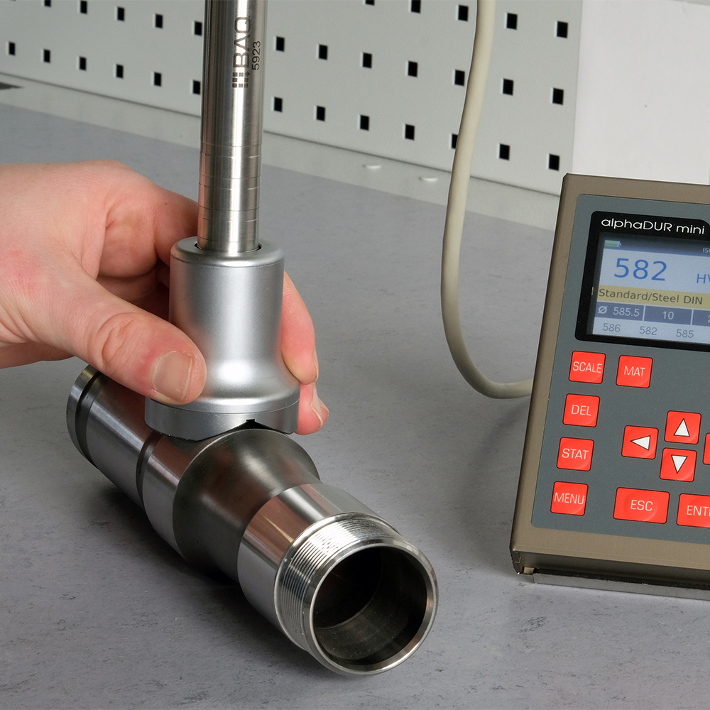 alphaDUR mini II Hordozható ultrahangos keménységmérő – egy kompakt, innovatív eszköz, amely ultrahangos visszhang technikával méri ki a különböző fémek keménységét érintés és felületelőkészítés nélkül. A készülék ideális választás, ha gyors, mobil keménységvizsgálatra van szükség nehezen elérhető területeken, kis alkatrészeknél vagy bevonatok alatt.