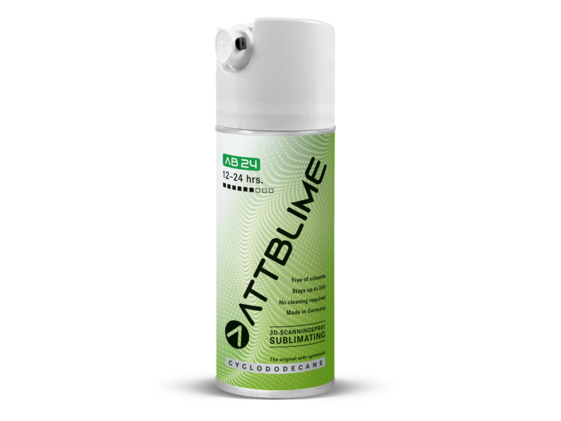ATTBLIME AB24 3D Szkenner spray – egy speciálisan kifejlesztett permet, amely matt felületet képez fényes vagy tükröződő tárgyakon, így segít optimalizálni az optikai 3D szkennelés pontosságát. A spray finom, homogén réteget hoz létre, amely nem torzítja a geometriát, ugyanakkor csökkenti a fényvisszaverődést és javítja a részletérzékelést.
