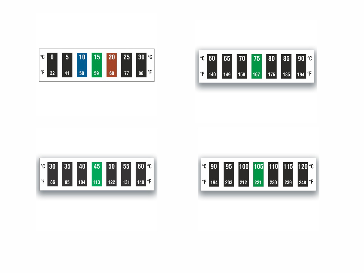 A címke jellemző tartománya 0 °C és 60 °C között van, és 5 °C-os lépésekben méri a hőmérsékletet. A mérete függőleges változatban 70 mm × 10 mm.