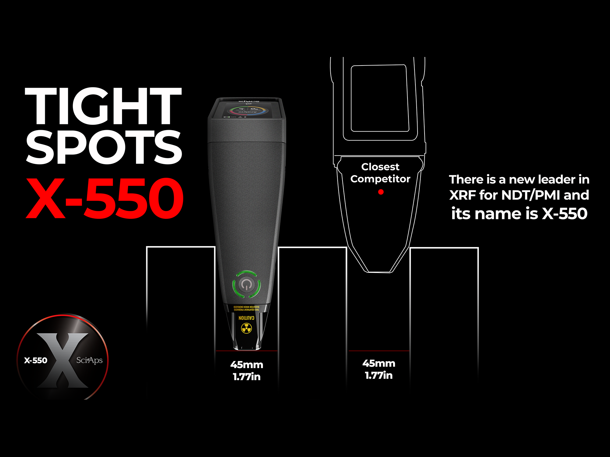 A SciAps X-550 továbbfejlesztett detektortechnológiát és optimalizált belső geometriát kínál, hogy kihozza a legjobbat az XRF mérési elv hatékonyságából. A készülék célja, hogy egyetlen kompakt eszközben egyesítse a mobilitást, a pontosságot és sokoldalúságot.