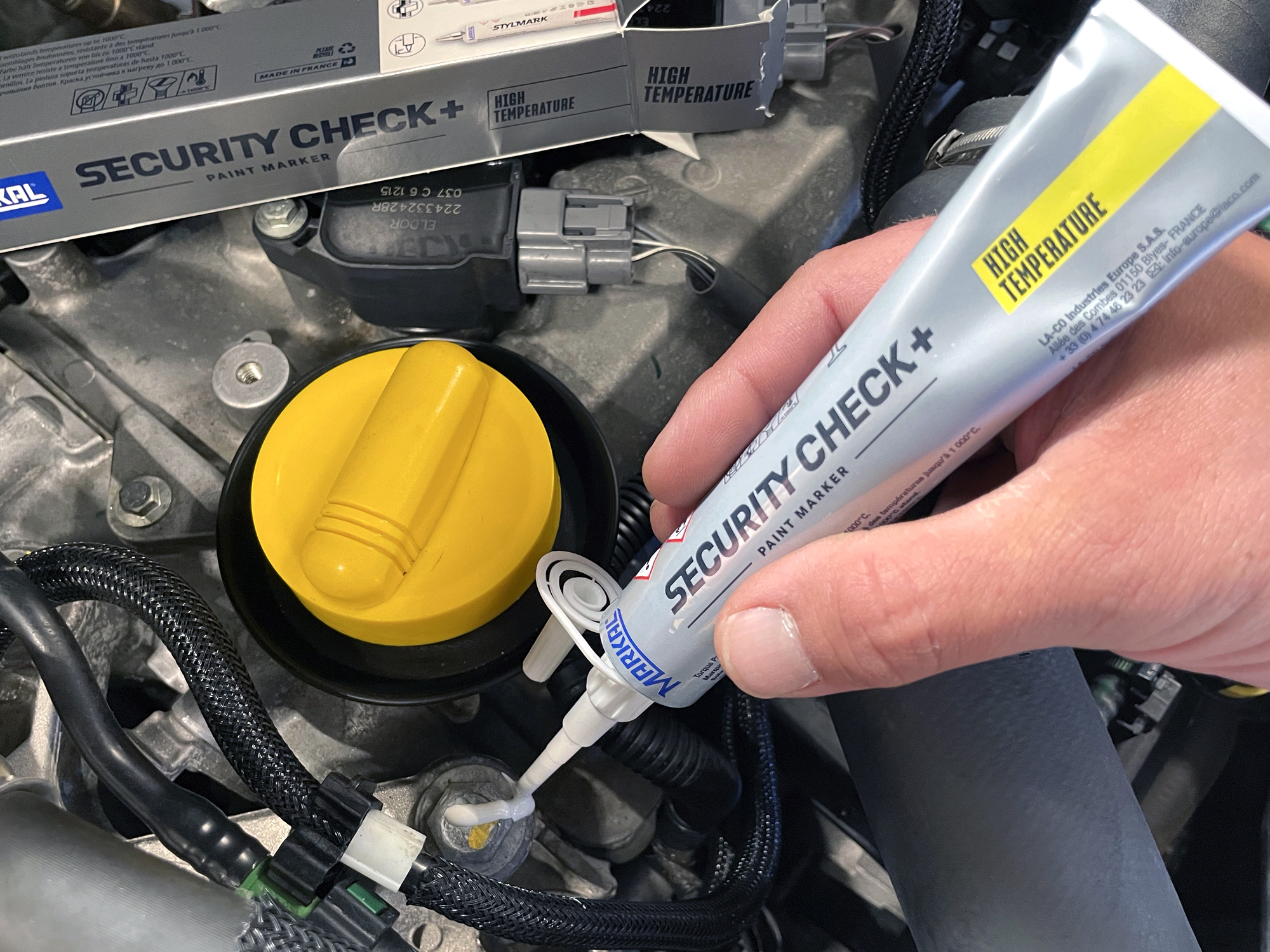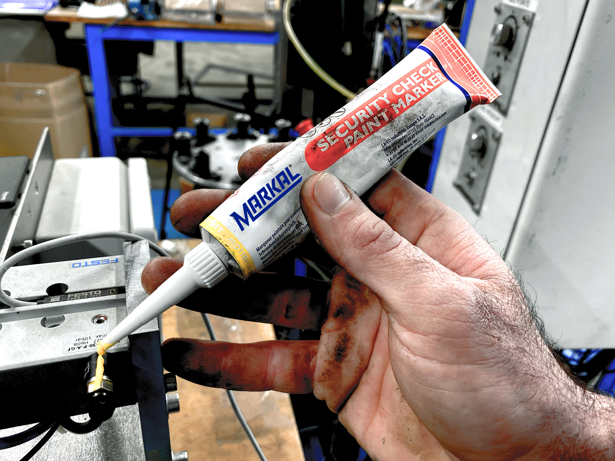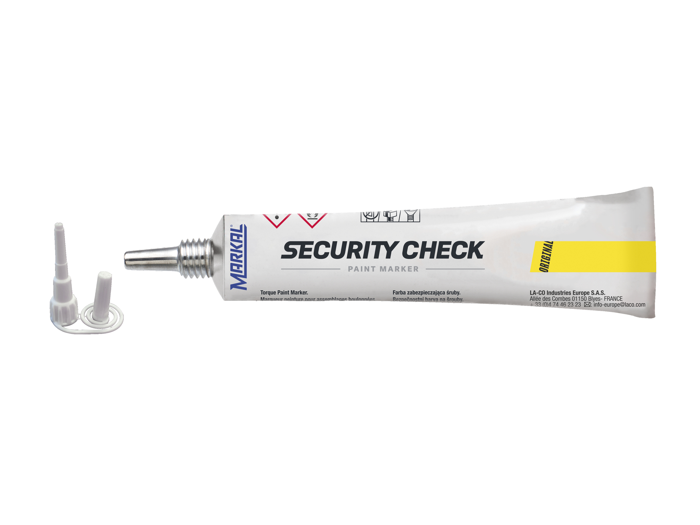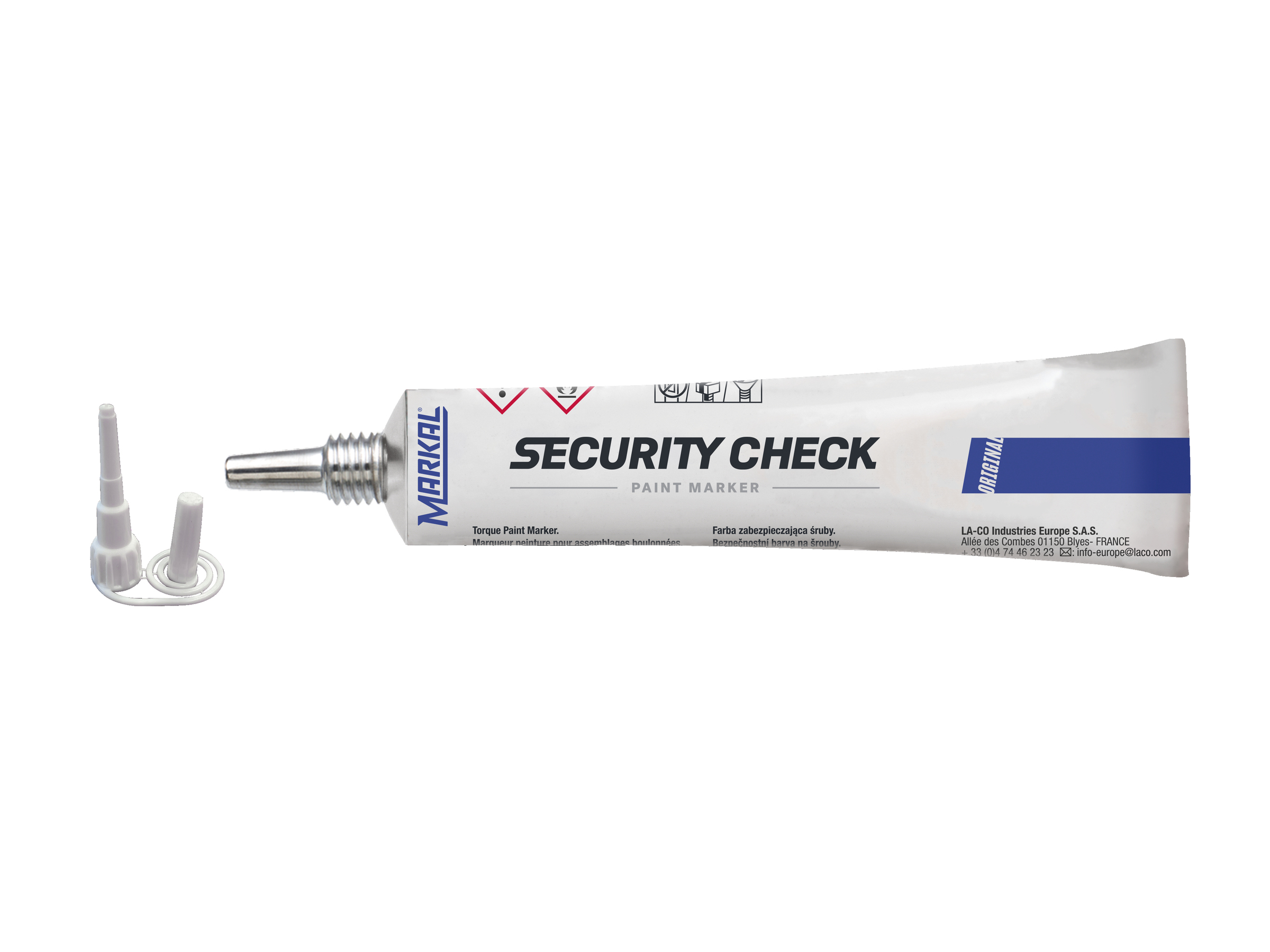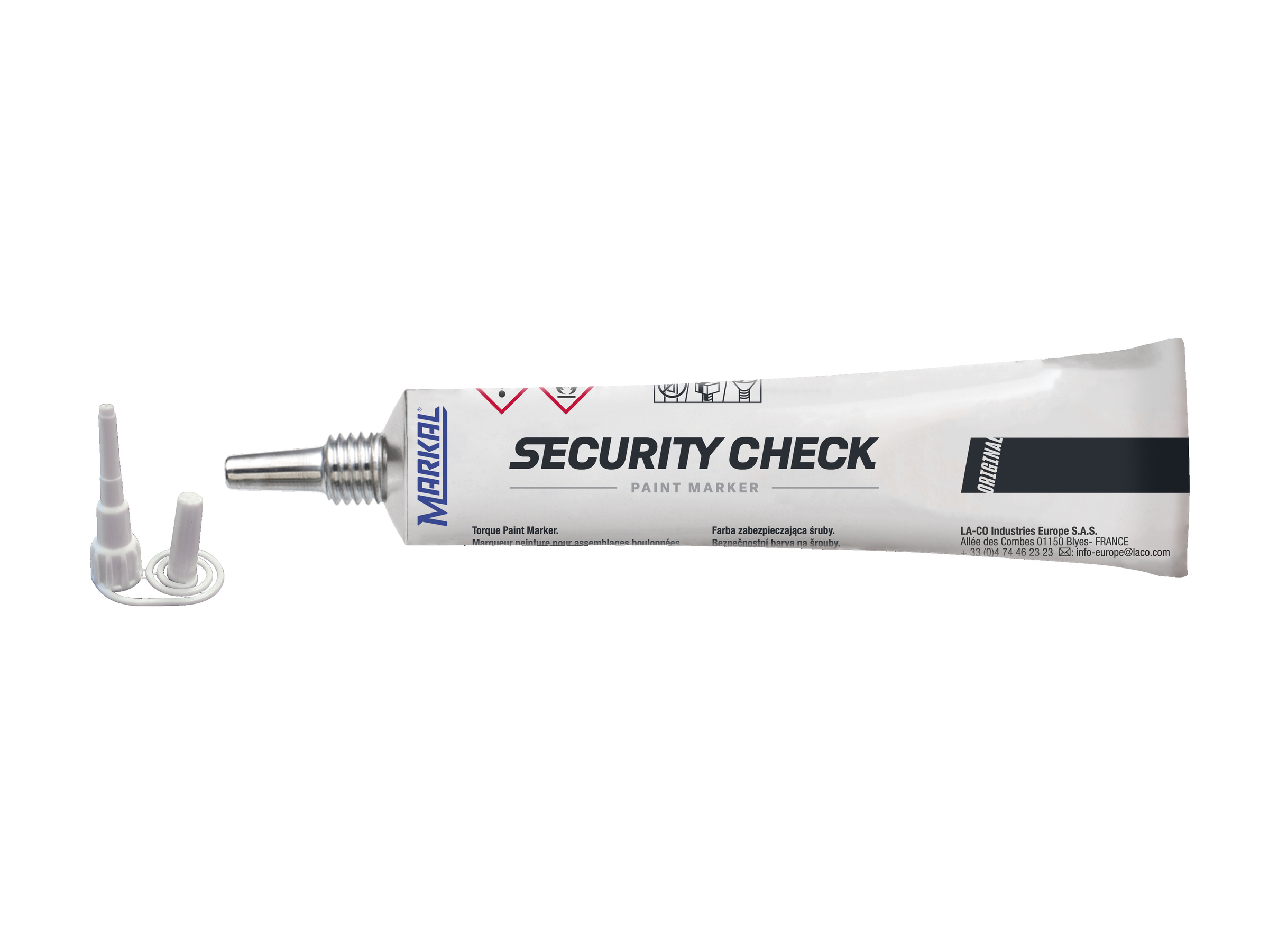SECURITY CHECK PAINT MARKER Biztonsági marker – egy olyan festékes jelölőeszköz, amelyet rögzítőelemek (például csavarok, anyák, csapok) biztonsági ellenőrzésére terveztek – az elmozdulások és kilazulás vizuális azonosítására.