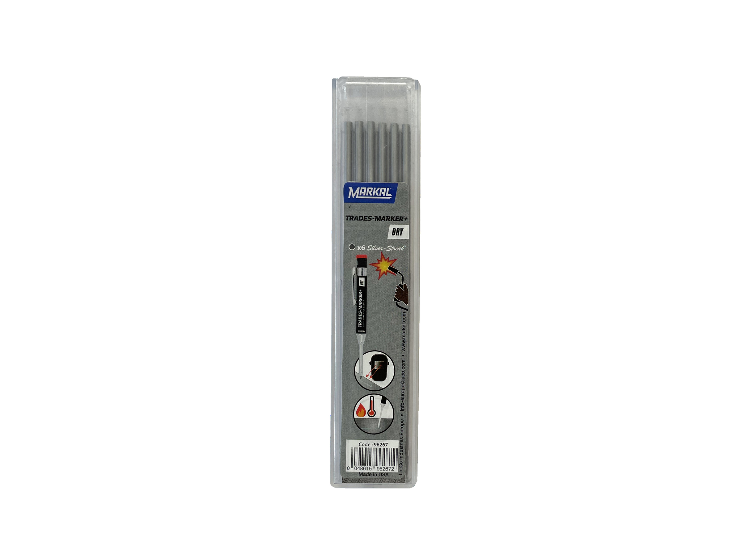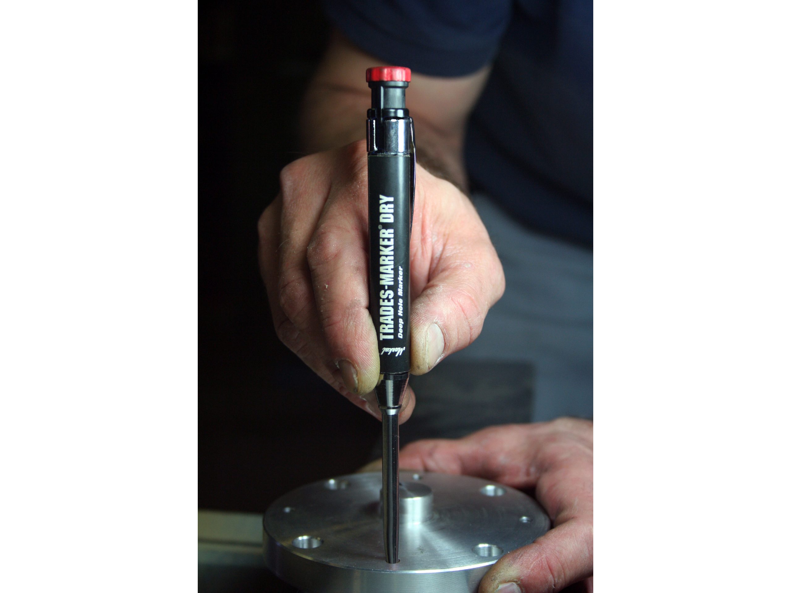 TRADES-MARKER DRY Mechanikus hegesztőceruza – egy újratölthető jelölőrendszer, amely kombinálja a hagyományos papírba burkolt ceruza egyszerűségét egy műanyag tok előnyeivel, lehetővé téve az egykezes, folyamatos használatot.