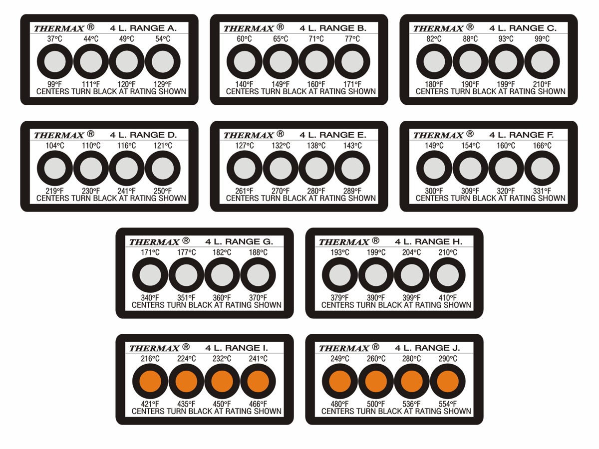 Visszafordíthatatlan 4 szintű hőcímke – egy speciális hőindikátor címke, amely négy fokozatban jelez visszafordíthatatlanul, ha egy felület vagy alkatrész elér vagy meghalad egy adott hőmérsékleti küszöbértéket. A címke úgy működik, hogy hő hatására a pigmentek színe állandó módon változik, így később is visszakereshető a hőexpozíció történése.