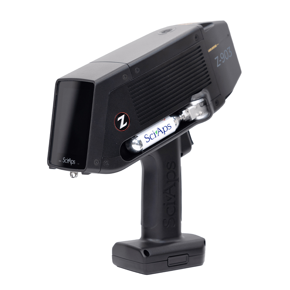SciAps Z-903 Geochem hordozható LIBS analizátor egy prémium kategóriás, három spektrométeres kézi lézeres eszköz, mely az egész periódusos rendszer elemeit képes detektálni (H-tól U-ig) sciaps.com+2Quantum-RX+2